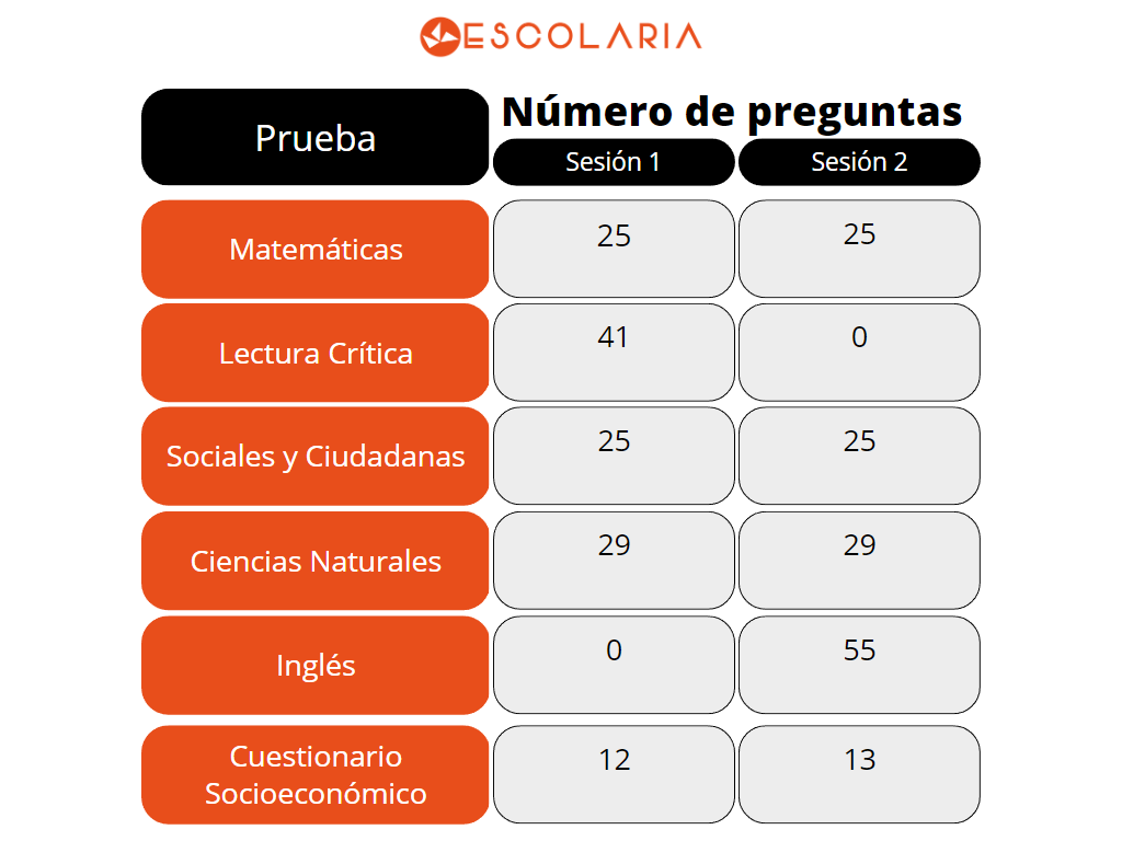 El ICFES en las Pruebas Saber 11° divide el examen en dos sesiones, de la siguiente manera: